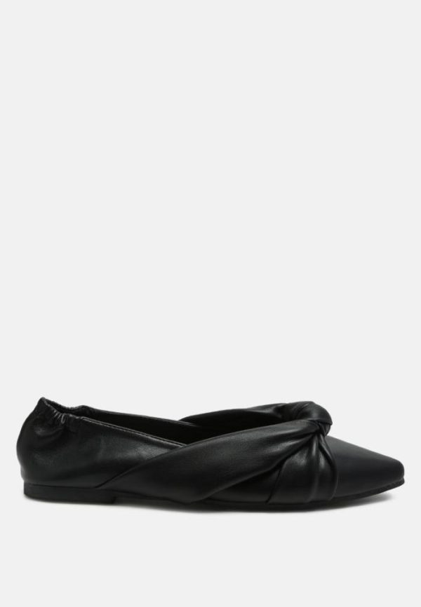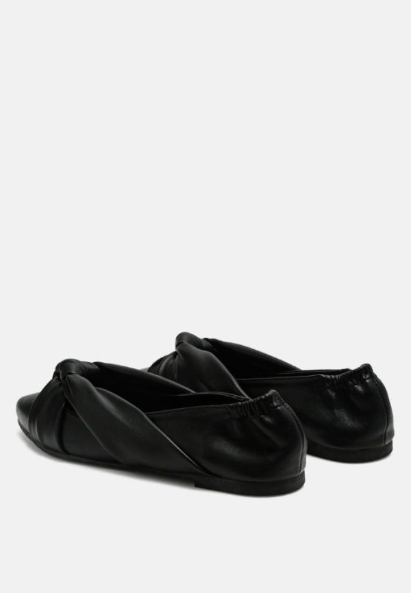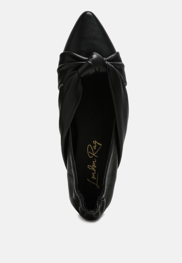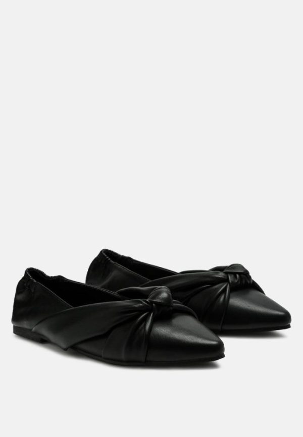 Almond toe elasticated ballet flats in pointed toes. Knot detail pointed-toe shoes to just step in stay all day. The cushioned foamed insole provides support and comfort.