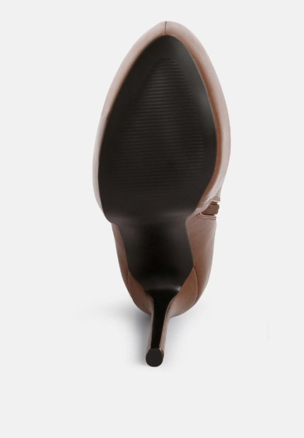 Marsha High Platform Stiletto Ankle Boots are the perfect heeled boots for just any day. These heeled boots are made using faux leather with elasticated gussets. With front elevation, slim heels, and crinkle texture, it gives you the look of a summer haze on a cold winter morning. This head turner is sure to make your day with tons of compliments. These girls’ boots are a must have in every women’s collection.