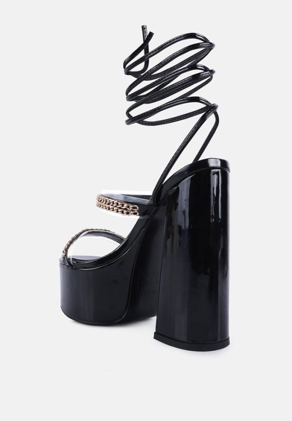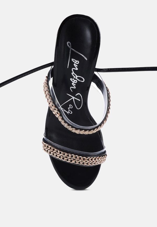 London Rag Heels | Indulgence Metal Chain Lace Up Chunky Sandals White Women