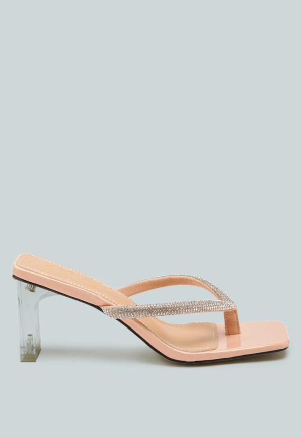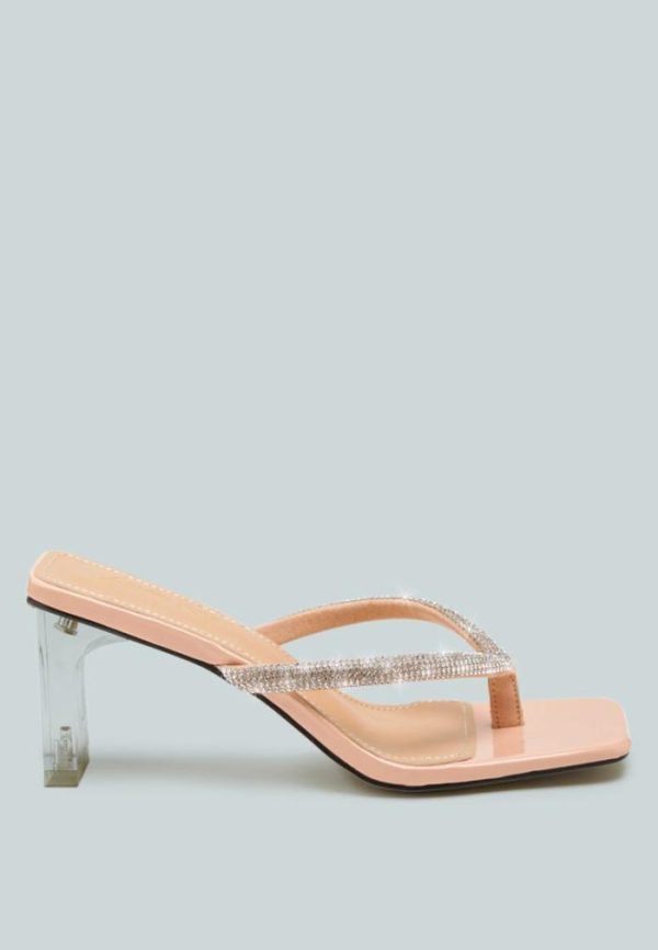 Rhinestone embellished strap sandals with a clear slim block heel combine glamour and elegance. These sandals sparkle with their rhinestone detailing, while the clear slim block heel adds a modern touch, making them a stunning choice for special occasions that demand a touch of dazzle and sophistication.
