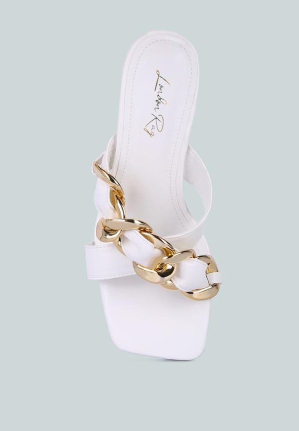 London Rag Heels | Wandy Link Chain Embellished Sandals White Women
