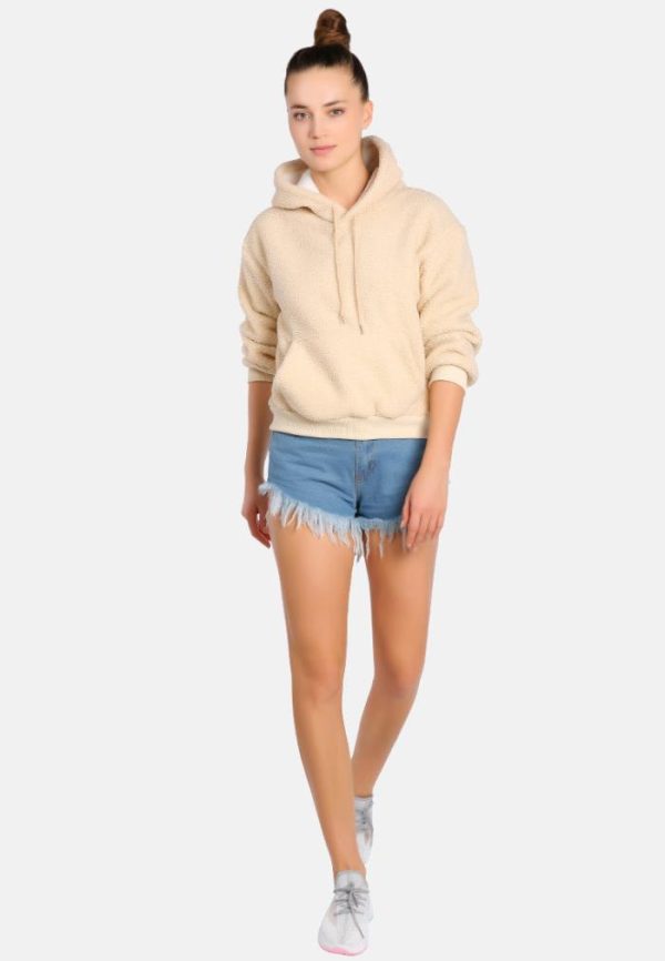 Cozy and warm, the hoodie sweatshirt with two front pockets. Comes with a ribbed hem and an internal soft lining.