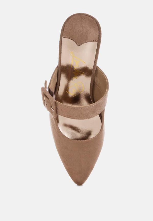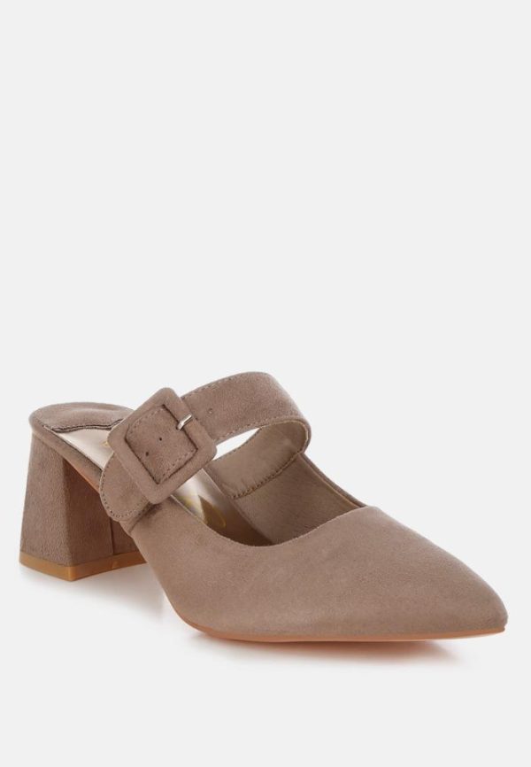 London Rag Mules | Amapola Buckle Strap Detail Microfiber Mules Taupe Women