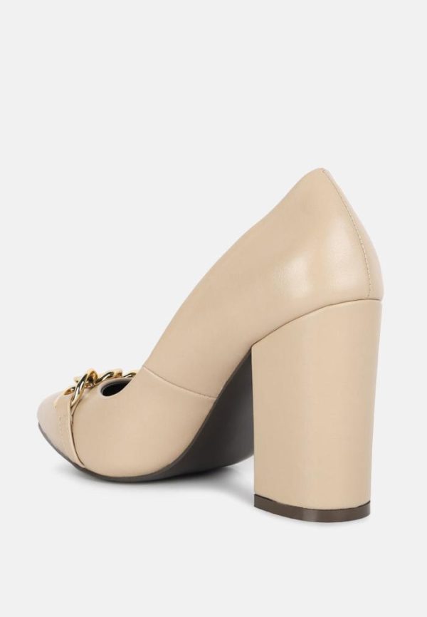 Looking to take your footwear fashion game a notch higher? The block heel pumps are an epitome of beauty and comfort combined, thanks to the metal chain detailing on the front and a soft cushion insole for the feet. Rock the high-heeled pumps in your office or after work without compromising on glam.