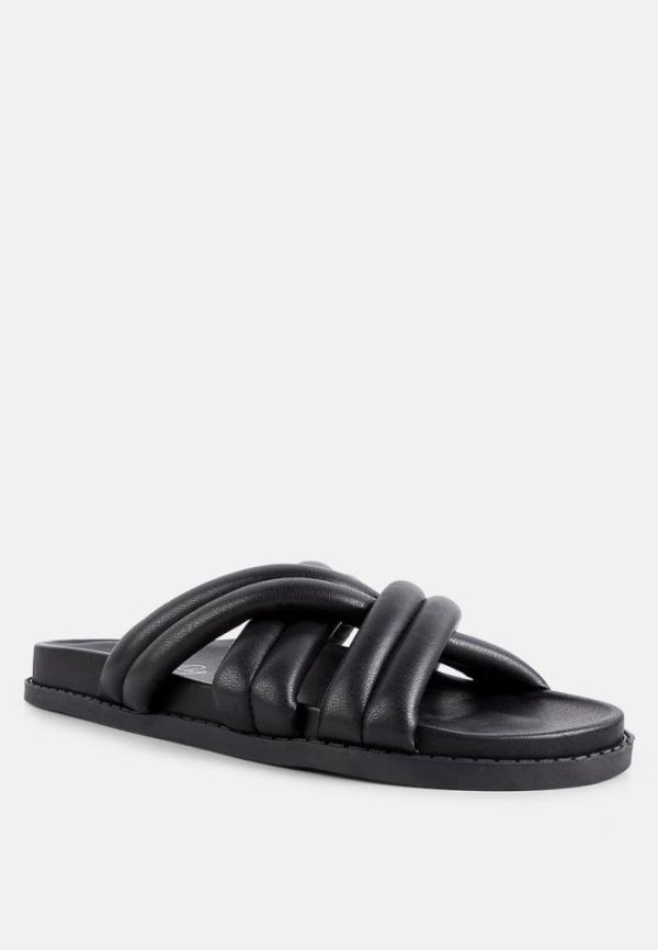 London Rag Sale | Tora Quilted Strap Slider Flats Tan Women