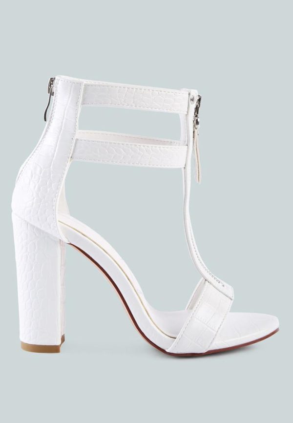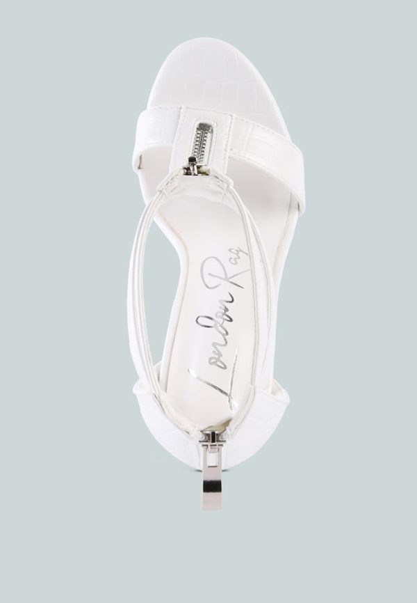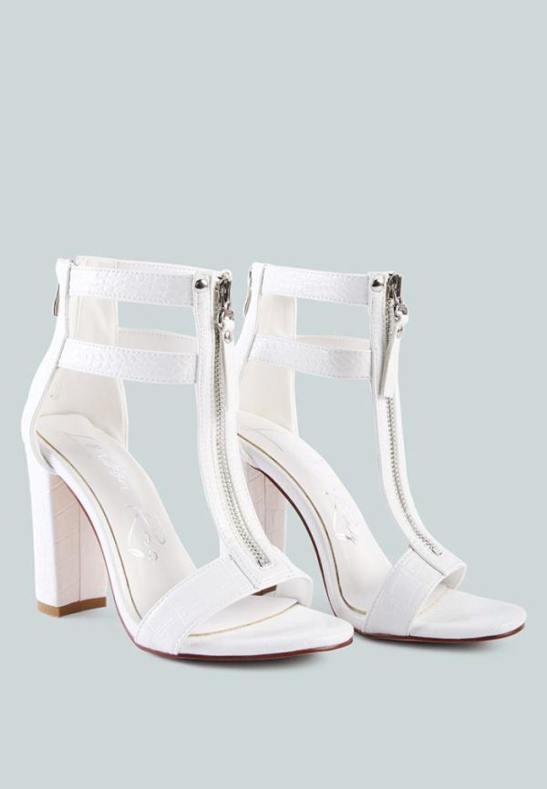 Make a statement with these high block heels, featuring a unique front zipper detail matched with a functional back zipper closure. Truly one of a kind of heels, which can be worn to elevate your outfits. Idea for special occasions or weekend parties with your favourite outfits!
