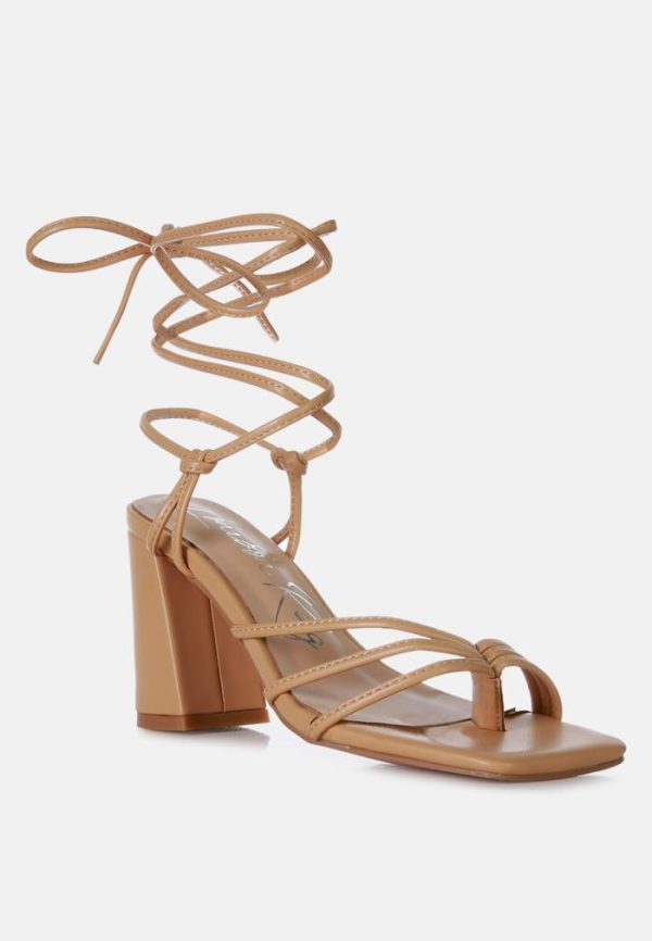 London Rag Sandals | Piri Toe Ring Tie Up Block Sandals Nude Women