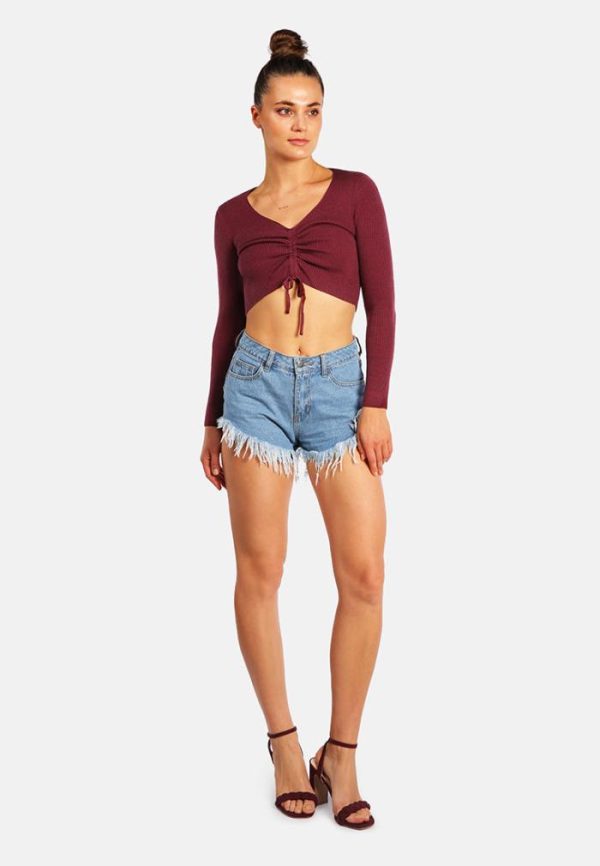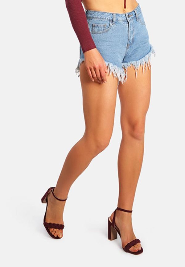 London Rag Shorts & Skorts | Destroyed Hem Rhinestone Patch Denim Shorts Light Blue Women