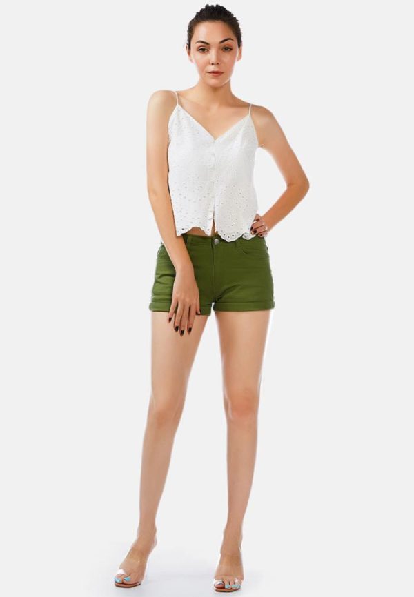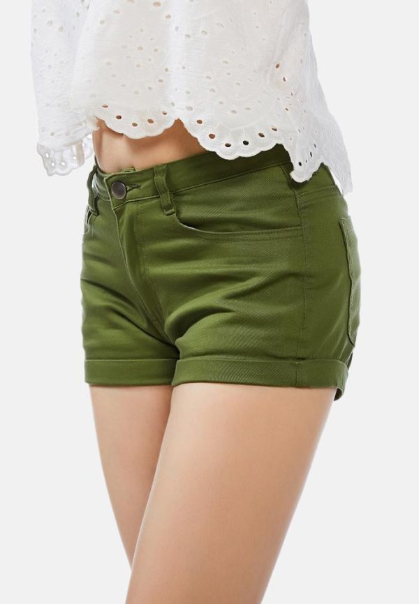 London Rag Shorts & Skorts | Upturned Hem Shorts Olive Green Women