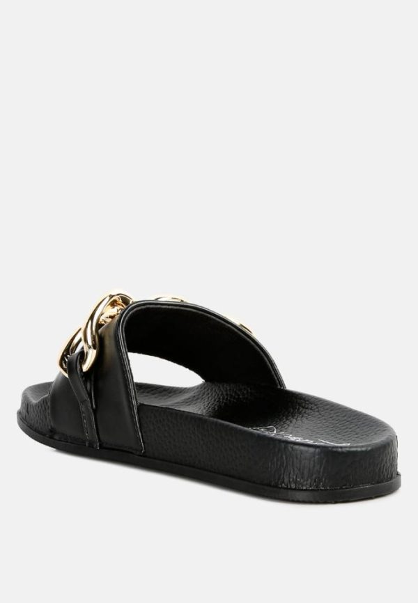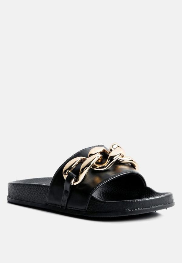 The molded footbed, comfortable platform, and gripping outsole are what make these otherwise beautiful metallic high bling slides utilitarian.